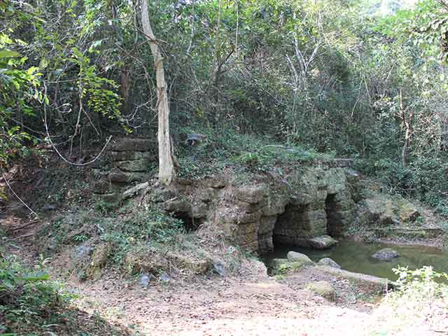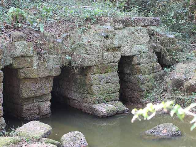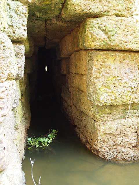 祠堂の手前には、濠(ベン・トム)と環濠を結ぶ迫出し工法で作られた排水施設(ルン・ダデウ)があります。