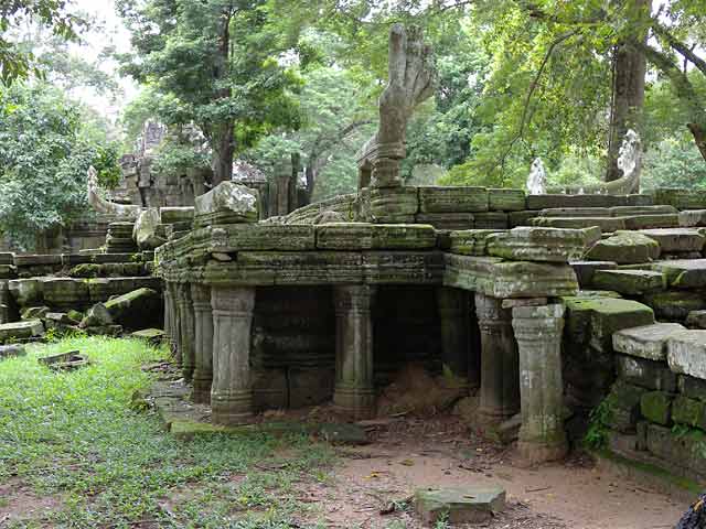 十字テラスは、円柱で支えられ、欄干はナーガで飾られています。