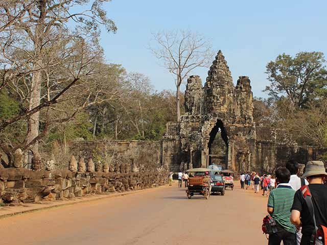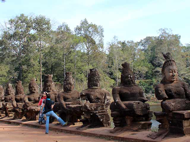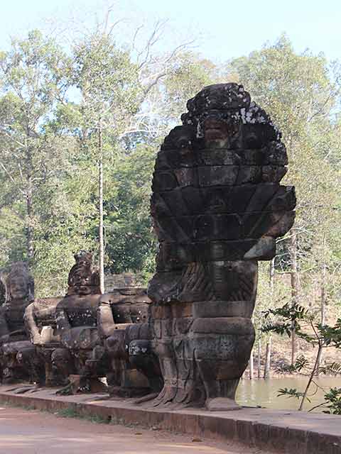 アンコール・ワット西参道を右手に見ながら環濠沿いの道をしばらく進むと、アンコール・トムの環濠に架かる陸橋見えてきます。