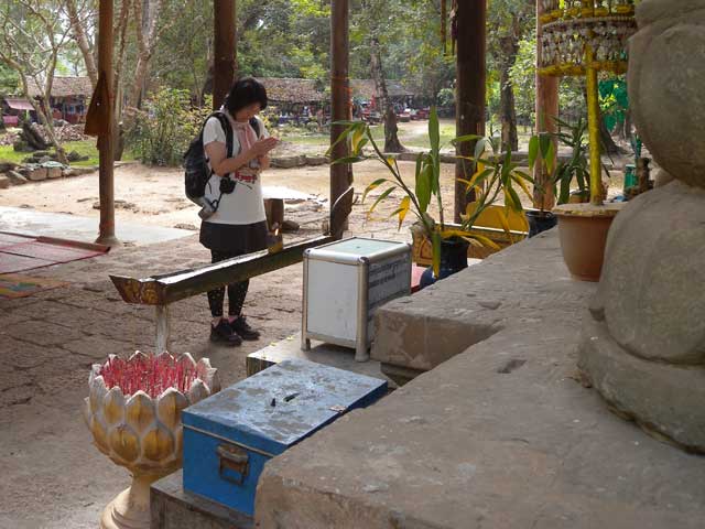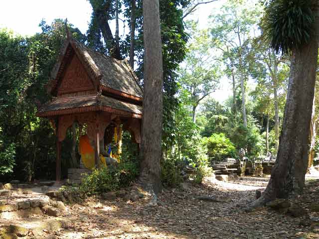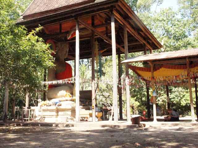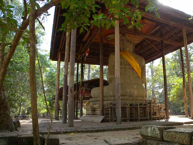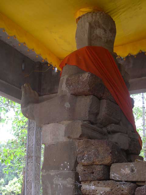現在は、簡素な造りの建物が建っていて、後世に持ち込まれた高さ約4mの大きな降魔印(触地印)の仏陀像が祀られています。