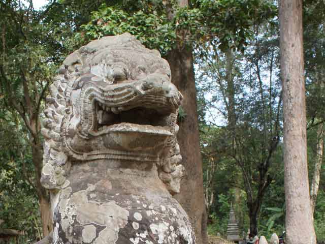幅8m、長さ75mの大きな参道を行くと、左右にシンハが置かれたテラスが現れます。