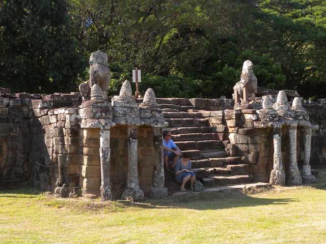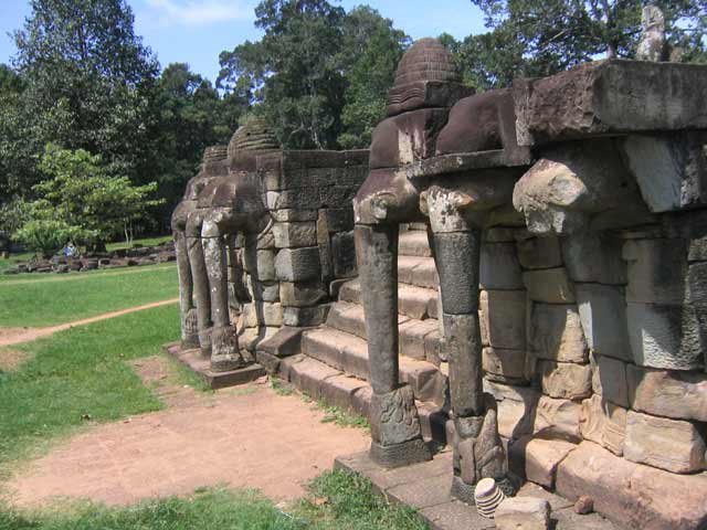 階段の両脇には、象の頭部を模した装飾も見られます。