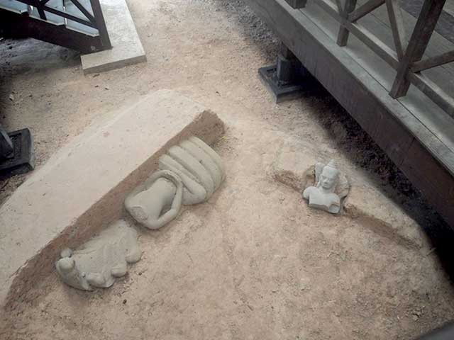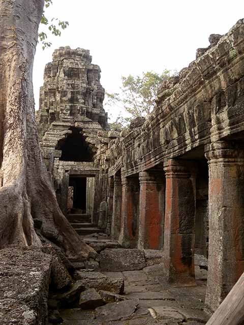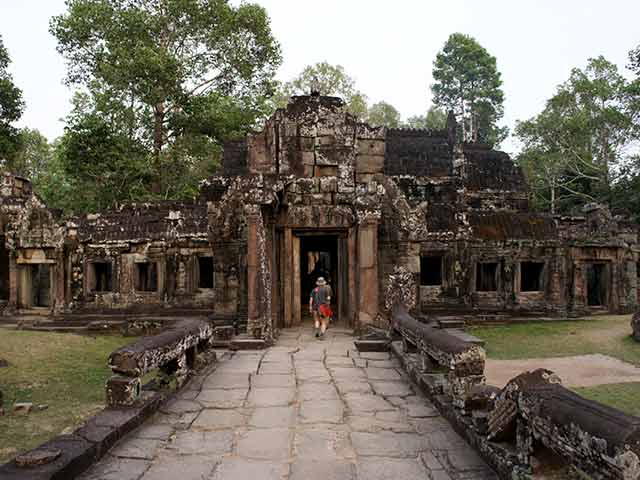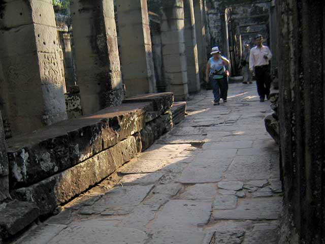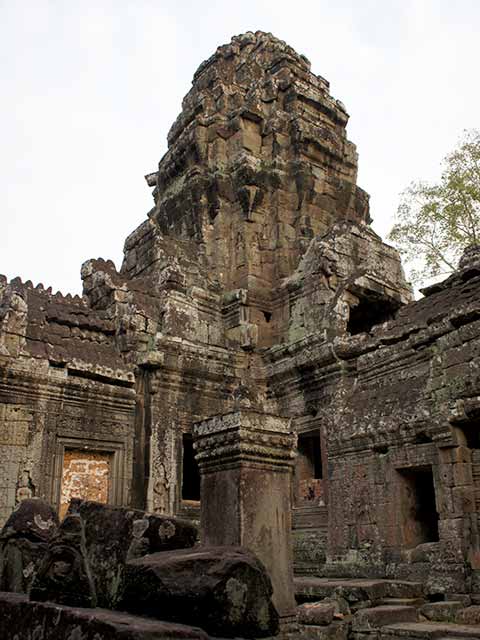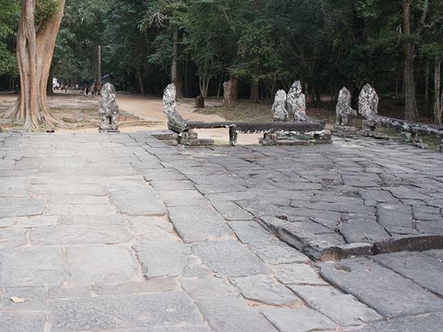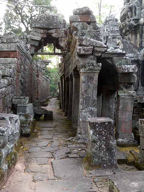 低品質の砂岩を使って建てられたので、内庭の祠堂の屋根や回廊はほとんどが崩れ落ちています。