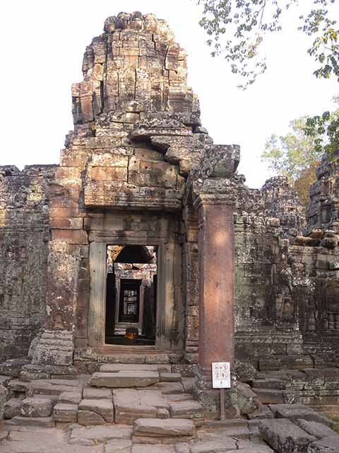 バイヨンやプリア・カン、タ・プロムと同じように、ここの塔門にも、四方を優しく見渡す四面仏が刻まれています。