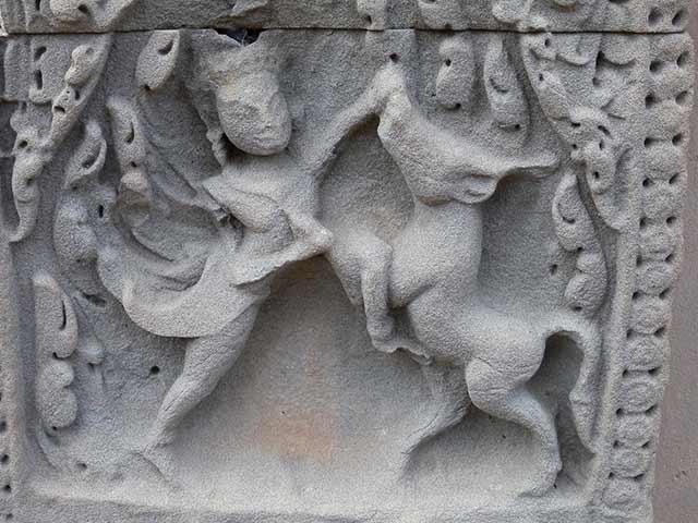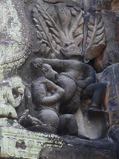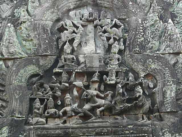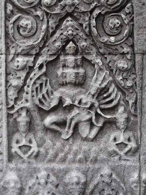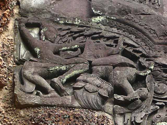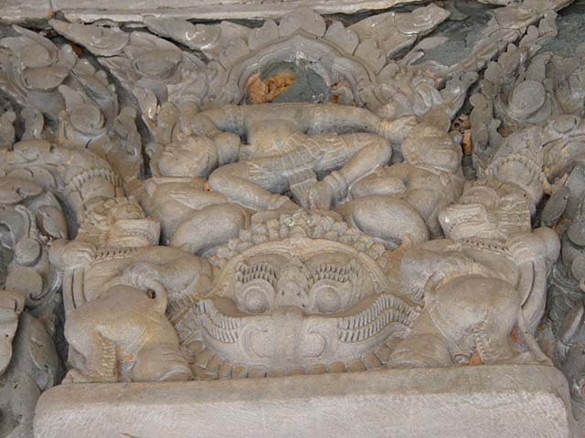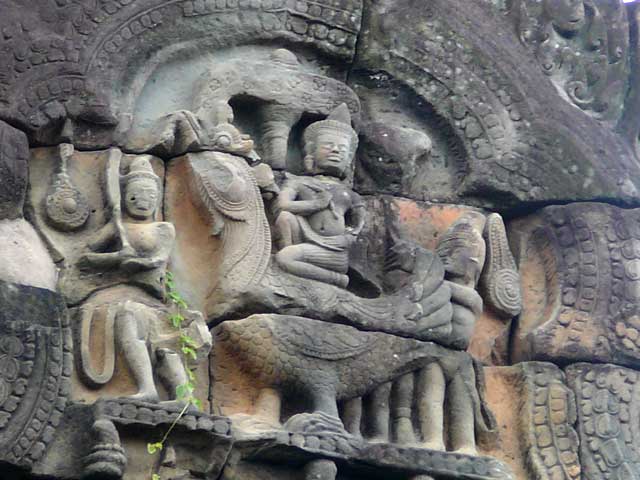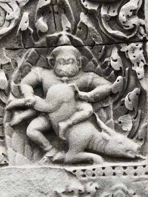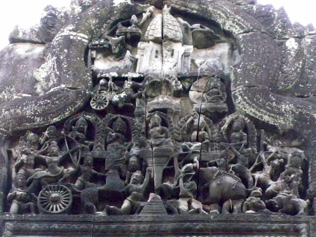 破風は、ラーマヤナを題材とした「刺さった槍を引抜くラーマ」や「ラーマとラーヴァナ」、シヴァ、ガネーシャ、クリシュナなどインド神話の宝庫です。(2013/07/13更新)