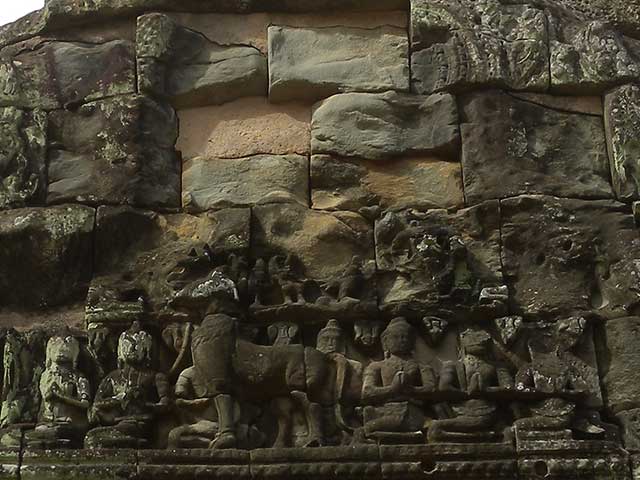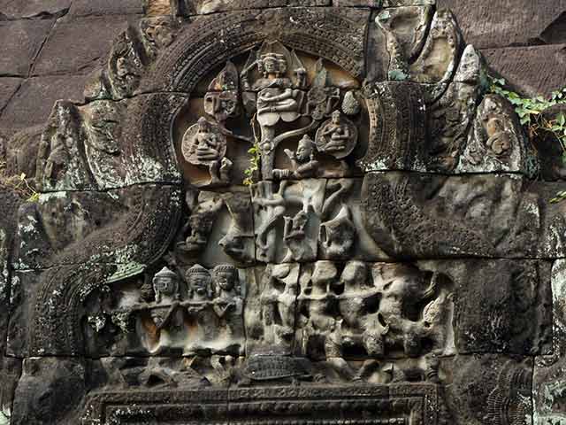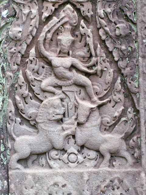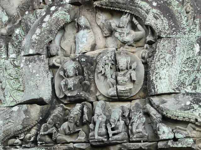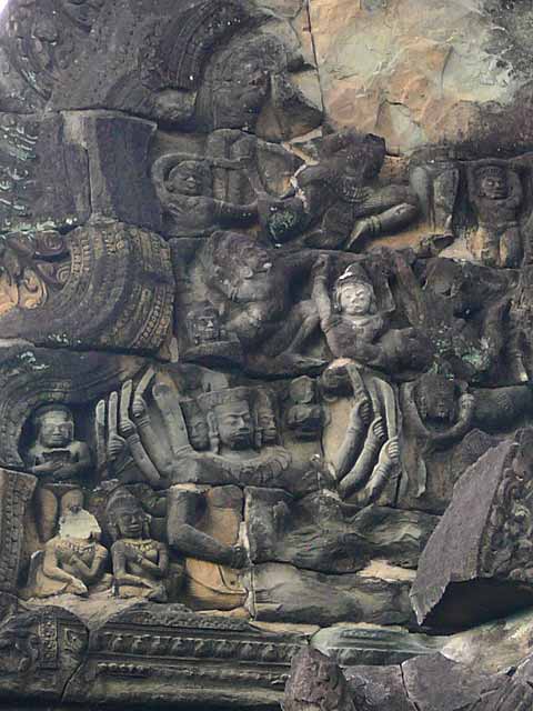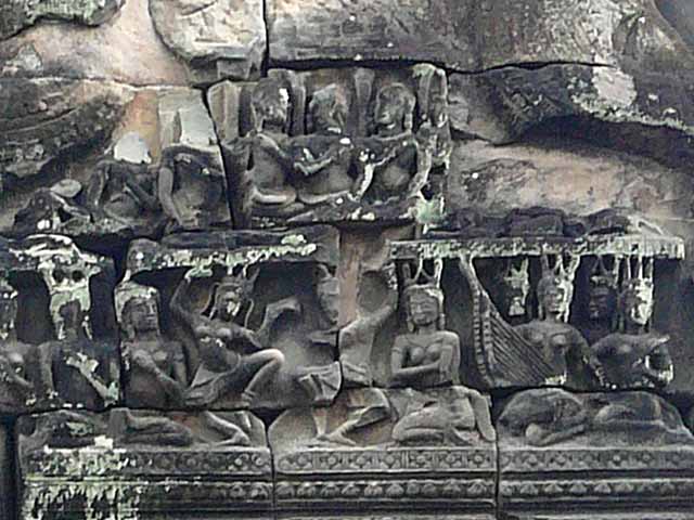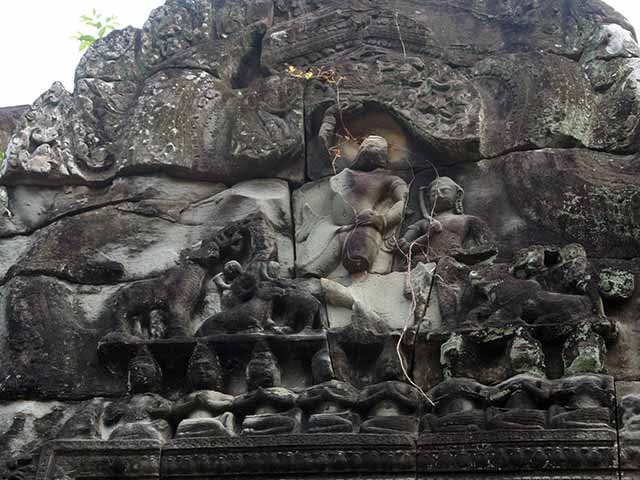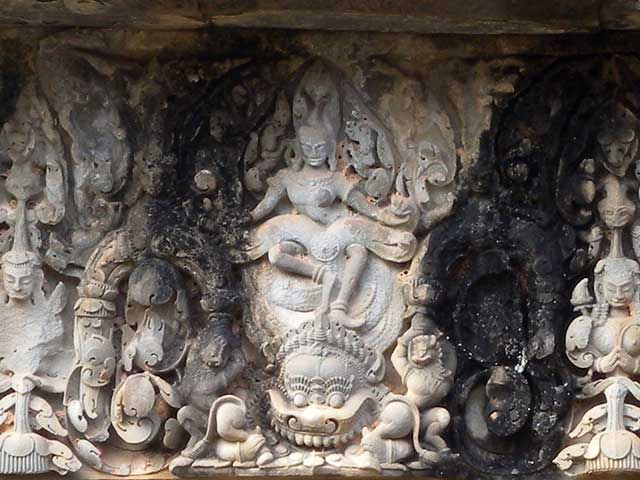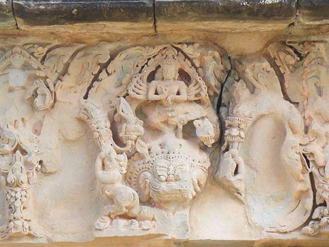 一つは、外周壁と内周壁の外面にあるシヴァ、ヴィシュヌ、ラーマなどのレリーフで、他のレリーフと異なり大きくて、彫られた像も力強く、高貴な衣装を身につけています。