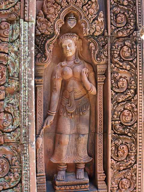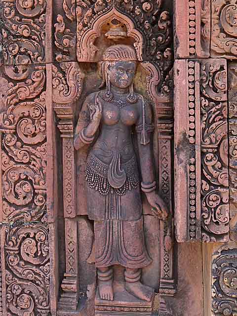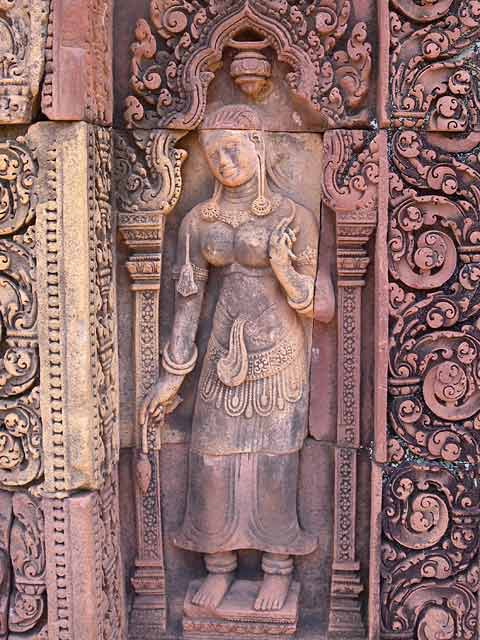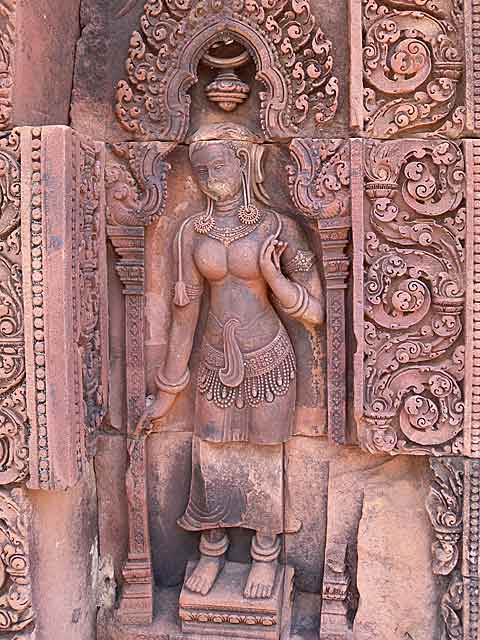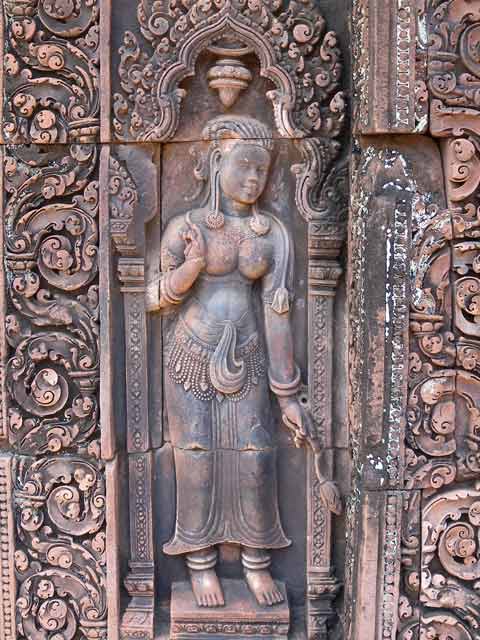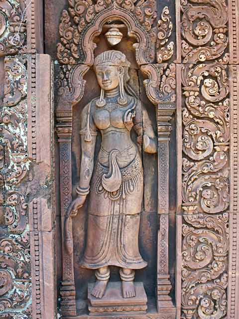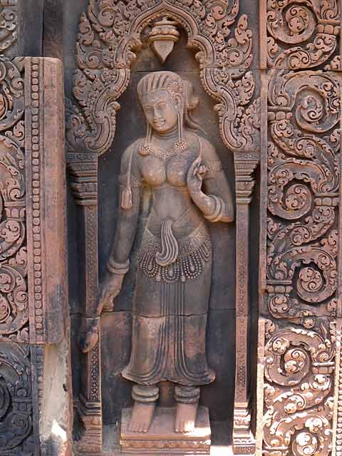 「地球の歩き方」アンコール・ワットとカンボジア('04~'05)P70のバンテアイ・スレイの記事の中で、これぞ「東洋のモナリザ」と紹介されているのは、北祠堂南面東側(N8)のデヴァターです。