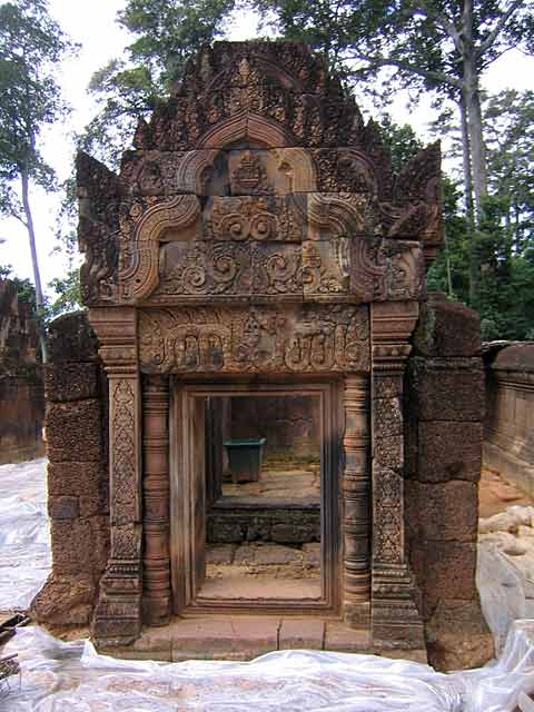フランス人作家 アンドレ・マルローを魅了したデヴァターが南祠堂と北祠堂の壁面に刻まれています。また、中央堂の壁がんには、ドゥヴァラパーラのレリーフが彫られています。(2016/06/20更新)