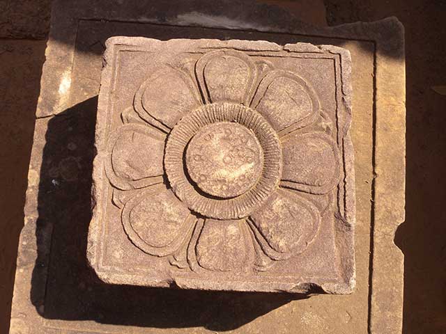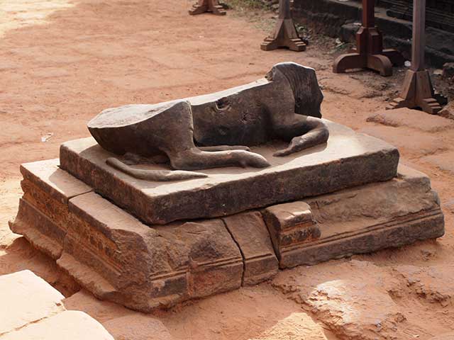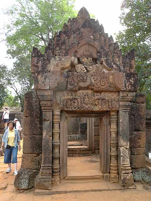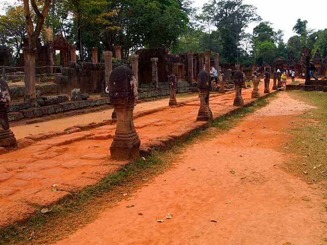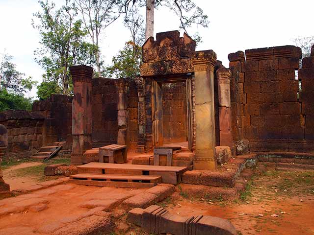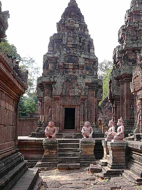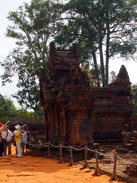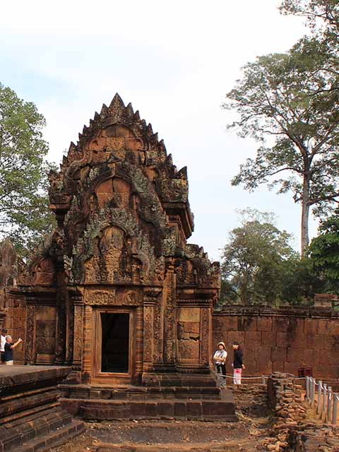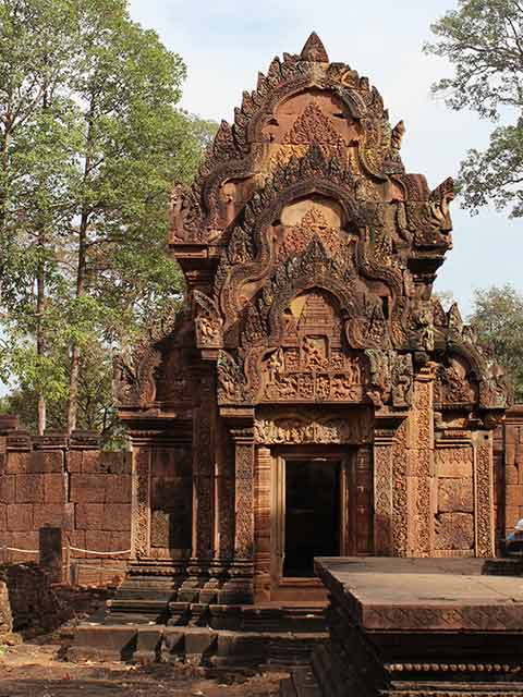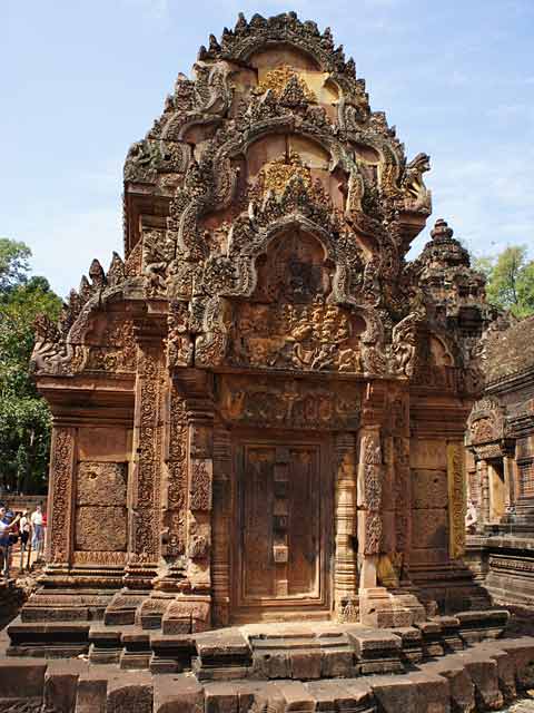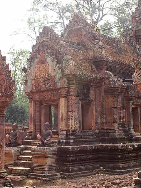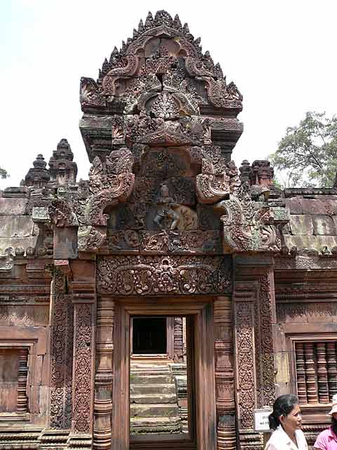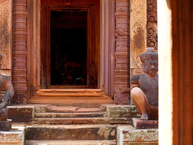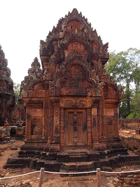 この寺院は硬い赤色砂岩で造られています。