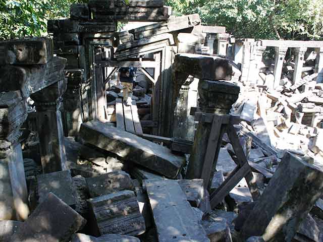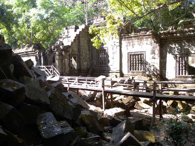低列柱上の参道は、ベン・メリア独自の様式です。(カンボジア 密林の五大遺跡p182)