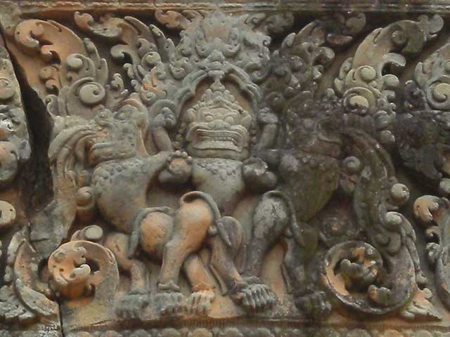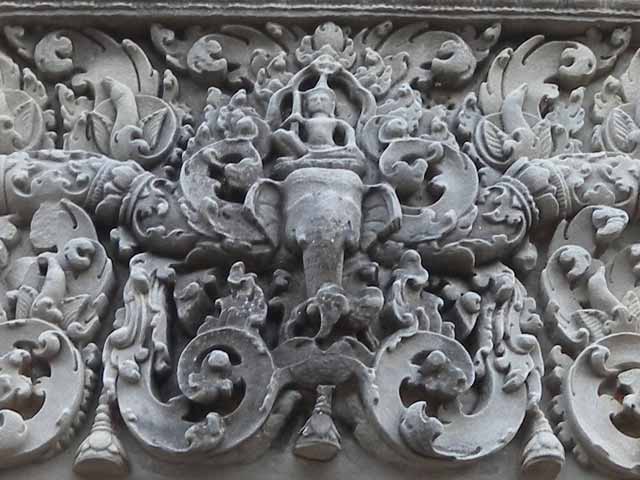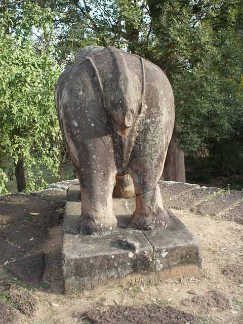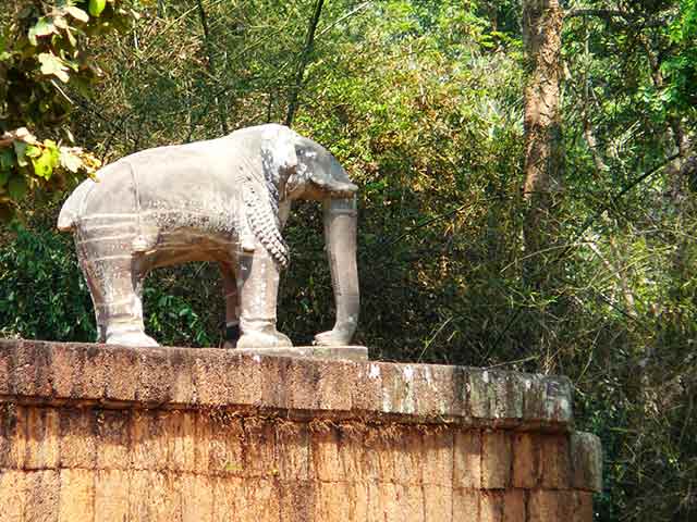 第二基壇の四隅に、この遺跡を特徴づける象の石像が据えられています。