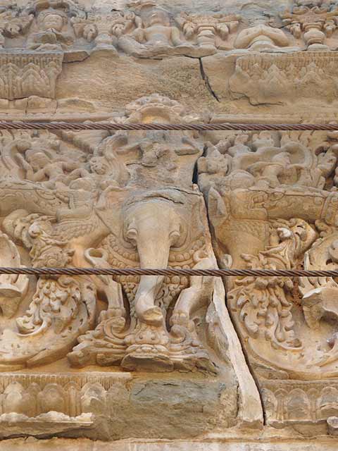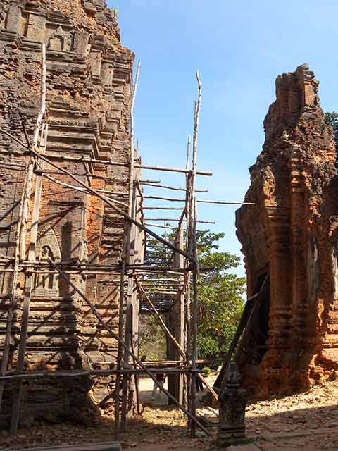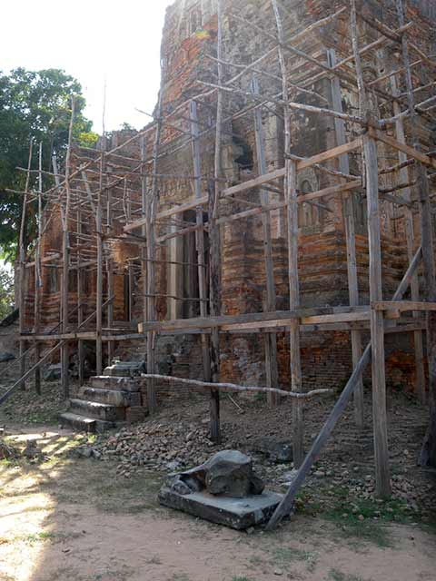 4基のレンガ造り祠堂が残っています。南西の塔は、破損が特にひどいです。