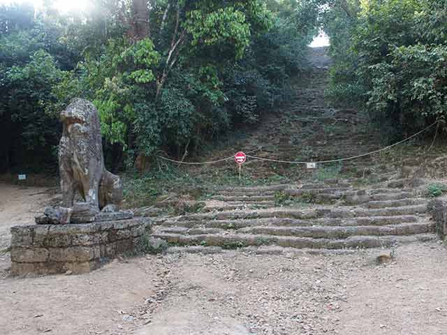 標高約60mのプノン・バケン山頂に建つピラミッド式のヒンドゥー教寺院です。