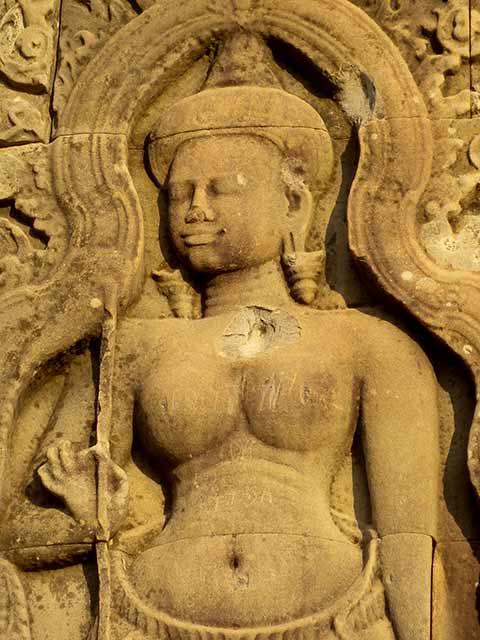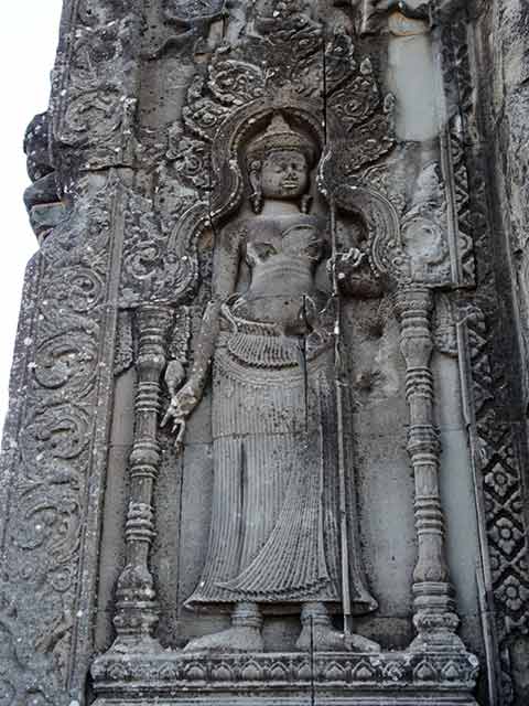 中央祠堂のひだ付サロンを身に着けたデヴァター