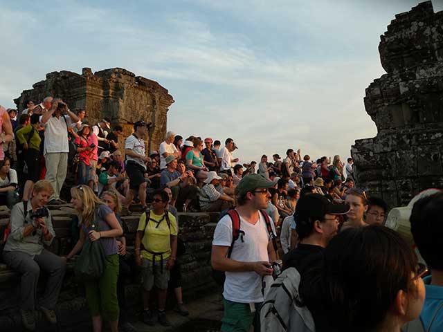 夕日に赤く染まるアンコール・ワットや西バライへ沈む夕日を見ることができるので、日の入りにはたくさんの人が訪れます。