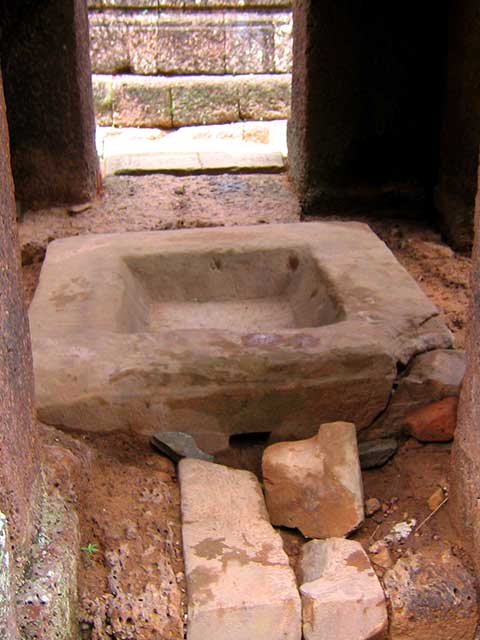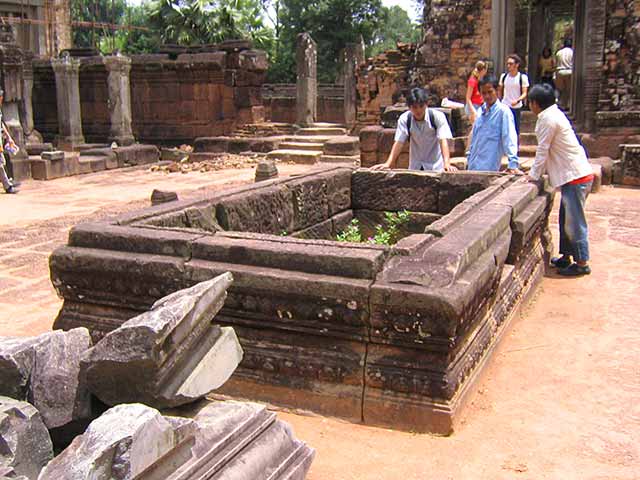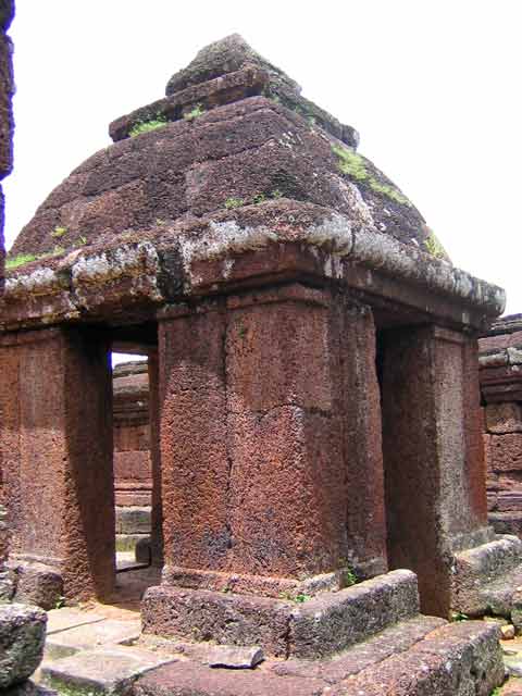 北東隅に、迫り出し構造を用いないクメール建築唯一の方形小祠堂があります。屋根部分が45度ずつ角度を変えて積み上げたスキンチ状工法が採用されています。(アンコール・ワットの魅力より)