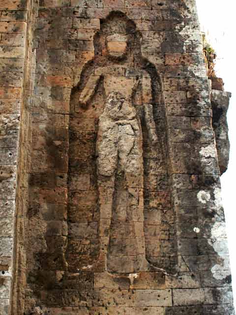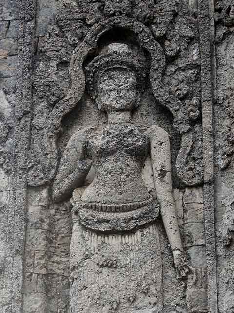 ドヴァラパーラ(女神)のうち一体は、ブラフマーの神妃サラスヴァティ(四面四臂)「Images of the Godsより」または、ブラフマーの女性形ブラミー「Ancient Angkorより」と言われています。(2014/09/04更新)
