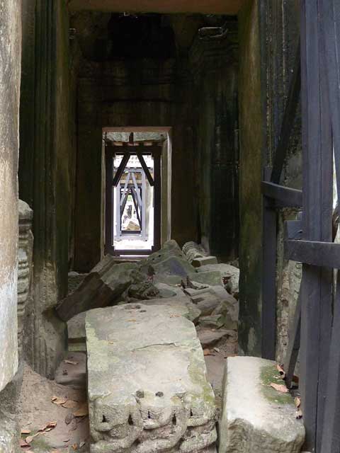 遺跡は、55m x 47mと小規模です。回廊の内部は、崩落した部分も多く石材が散乱しています。