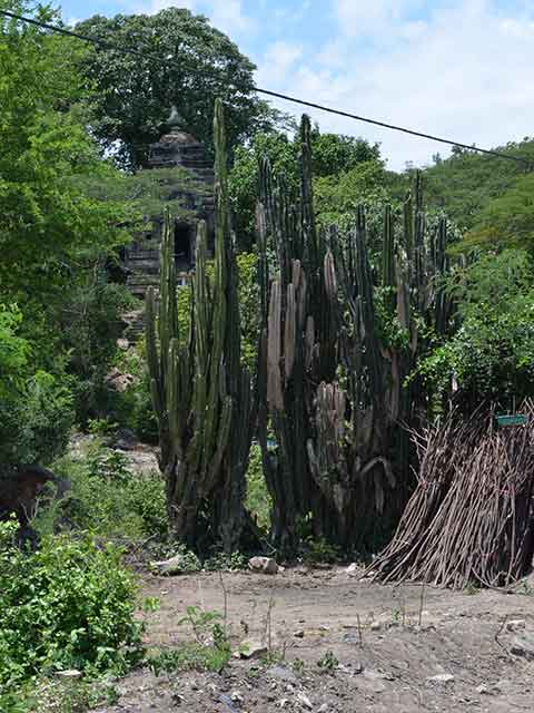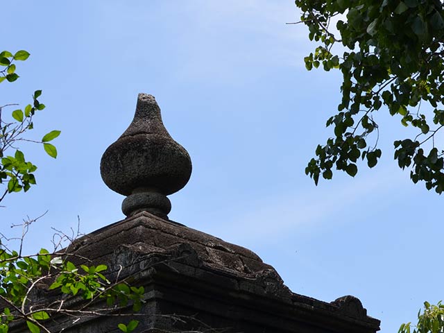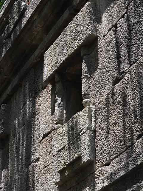 灰白色の石材と屋根飾りが、他の遺跡と異なる雰囲気を醸し出しています。