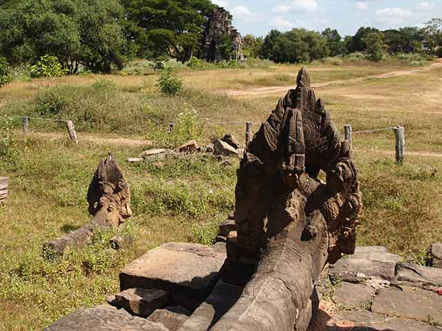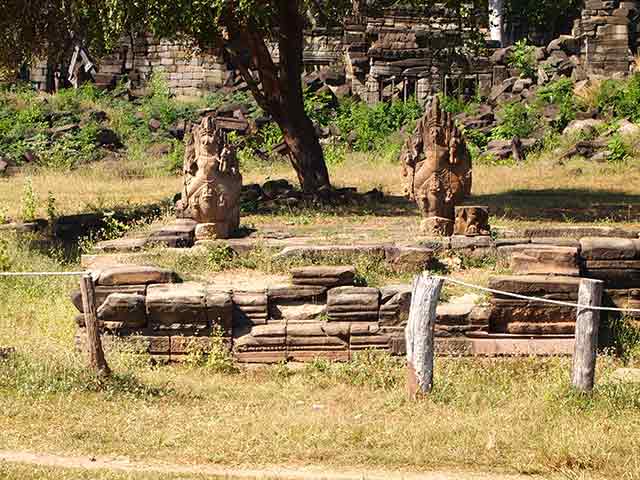 南参道のデヴァーとアスラの像が積み直されていましたが、残念ながら、ほとんどの像の頭部は失われています。