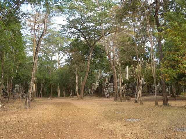 この遺跡群の中心遺跡は、東西1.2km、南北200mで、東西の軸線上に、東からプラサット・トム、プラン(ピラミッド型寺院)、土饅頭型墳墓(白い象の墓)と並んでいます。