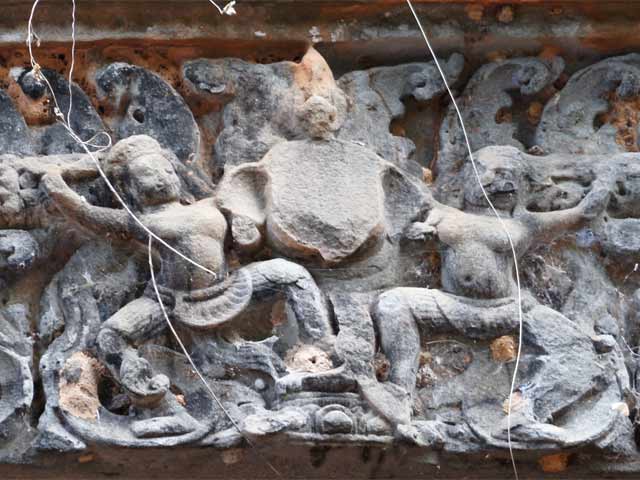 プランの頭頂部に設けられた祠堂の基壇の内部には、ガルーダが支える大台座があり、そこには黄金のリンガが天空に輝いていたと言われています。