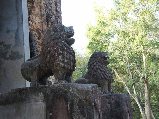 東面扉の両脇にたてがみに特徴があるシンハが置かれています。